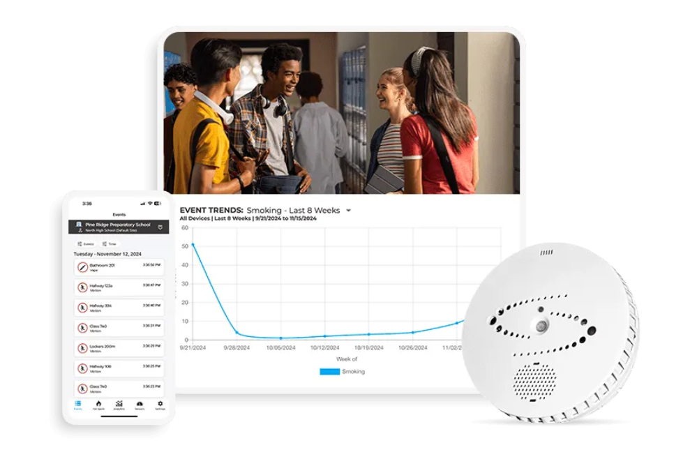 Vape och e-cigarettrök, vilket hjälper skolor att upprätthålla tobaksförbud och skydda inomhusmiljön.